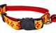 This handmade break-away collar is designed with durability and comfort in mind. Crafted from heavy-duty nylon webbing and grosgrain ribbon, it features a strong rounded plastic break-away buckle for safety and a welded D-ring for tags or charms.