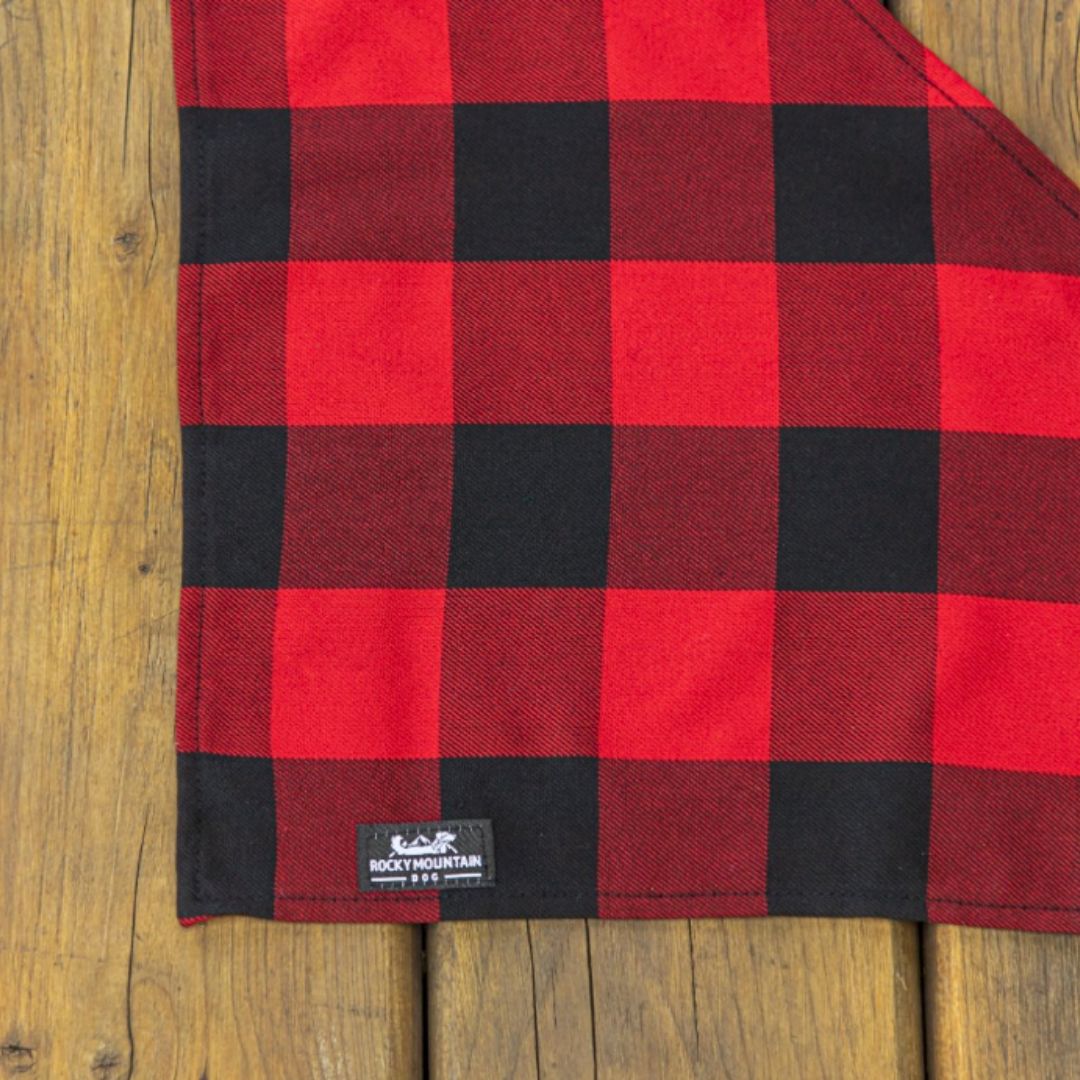 This bandana is handcrafted in Calgary, AB from beautiful, high-quality 100% flannel textile finished with a classic folded hem and our RMD black logo patch.