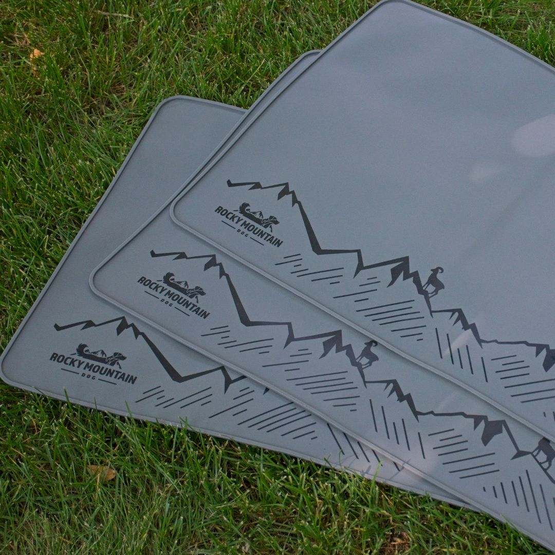The mats match the Rocky Mountain Dog Bowl and can fit both bowls side by side.