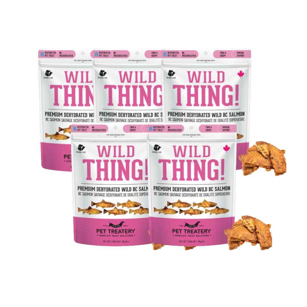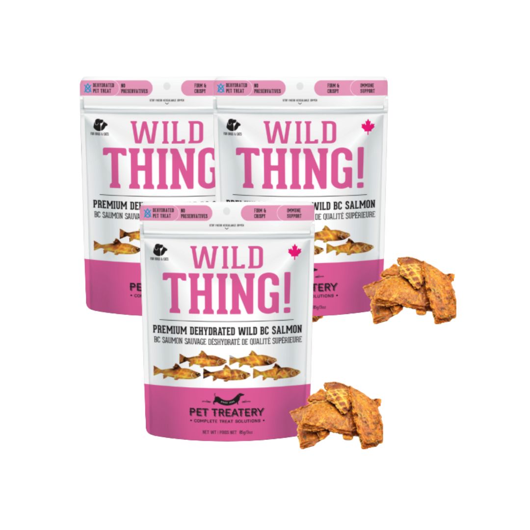 Bring the wild to your pet’s snack time with Wild Thing—a pure, single-ingredient treat made from 100% wild-caught salmon. Perfect for both dogs and cats, each piece is slowly dehydrated to preserve nutrients, natural flavor, and the irresistible taste pets love.