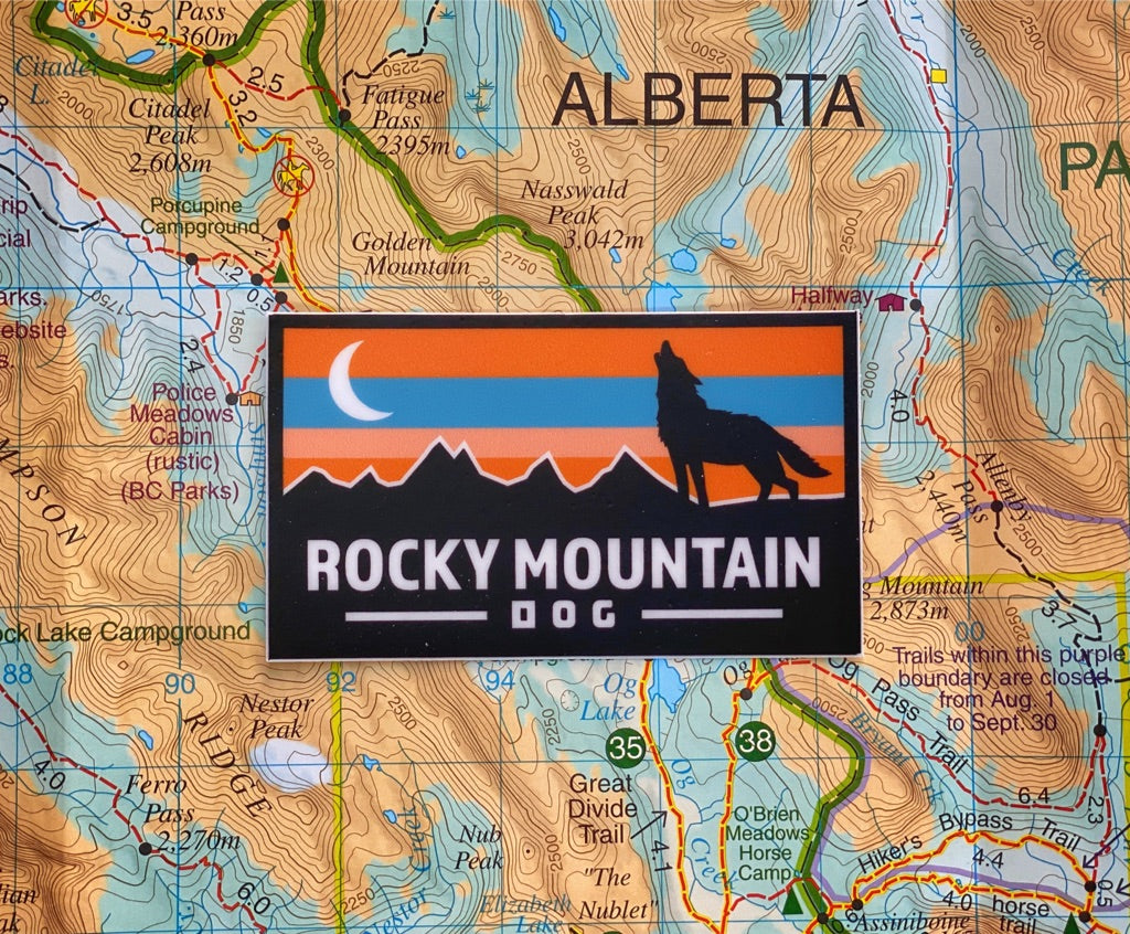 Rocky Mountain Dog Rectangle Wolf Crescent Moon Sticker
