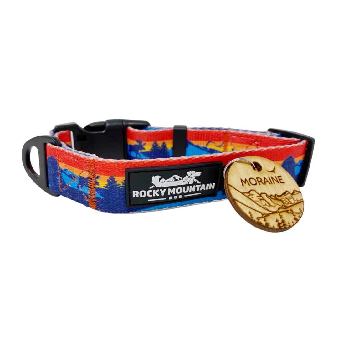 With inspired designs of the Rocky Mountains and landscapes on wood or aluminum tag options your dog is sure to get noticed.