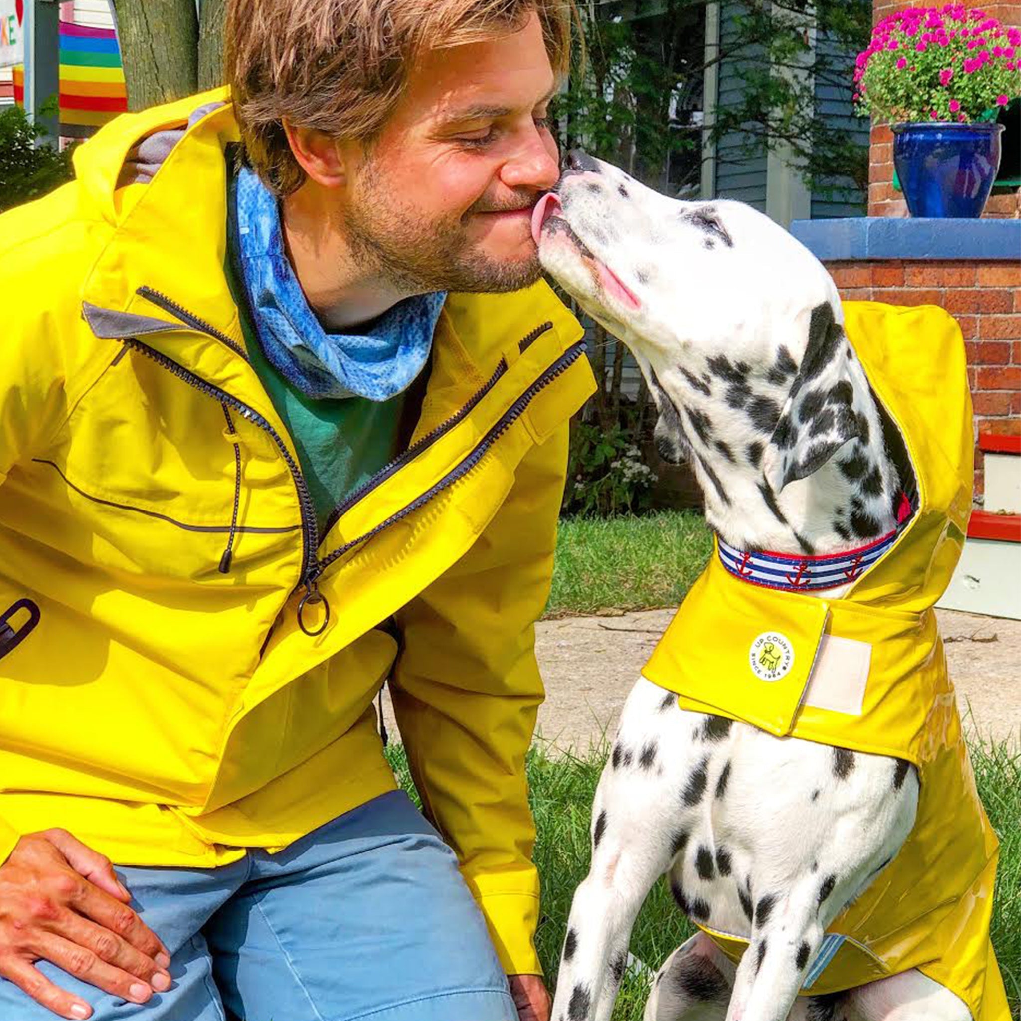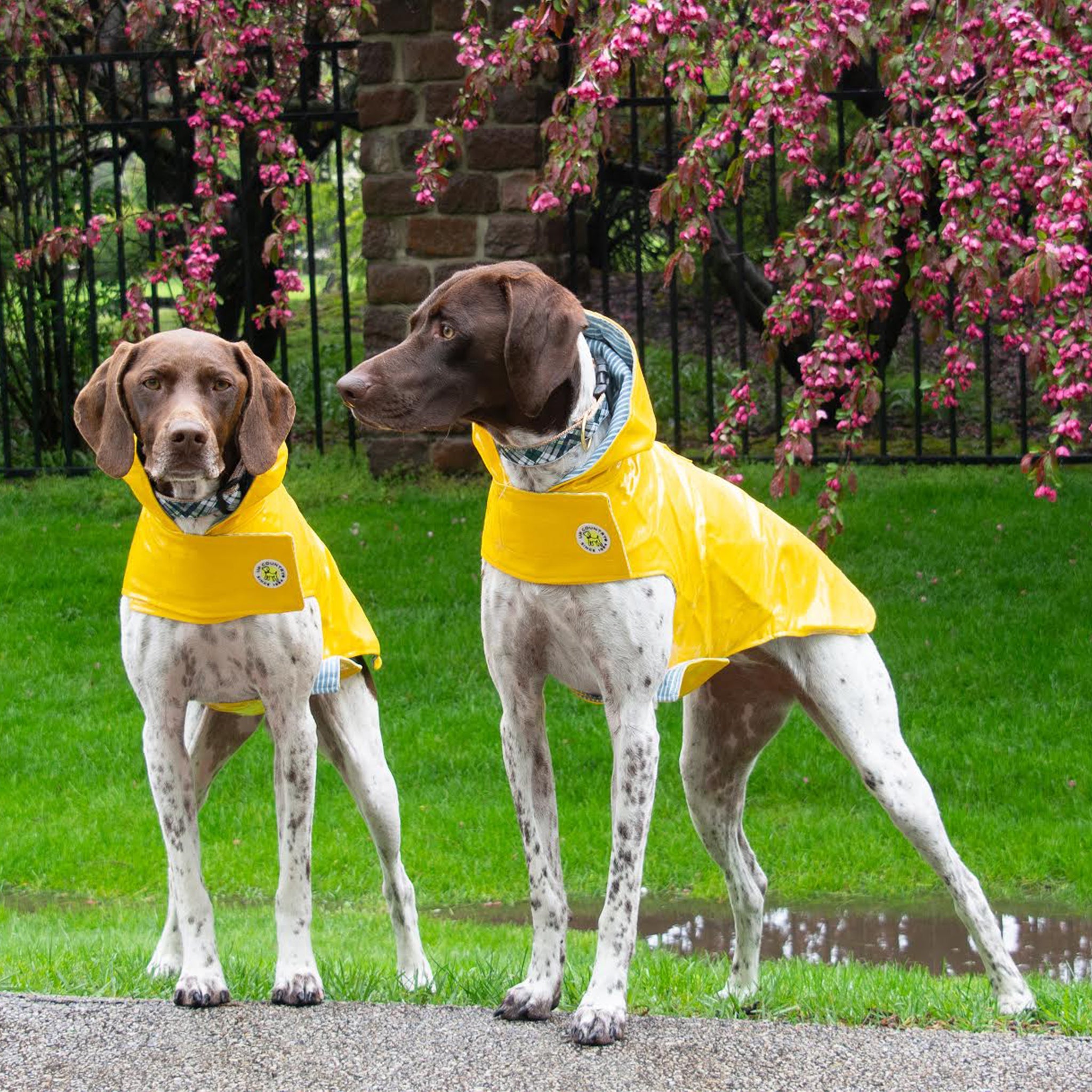 Rainy days, don't go away! We have the perfect rainy-day attire to keep your dog nice and dry while playing outside. Our slickers are also perfect for the pooch who hates to get wet. Water repellent slickers have a ticking stripe lining and functioning hoods, so your dog will look slick and stylish.
